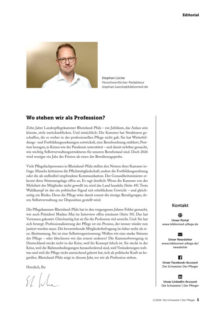 Zehn Jahre Landespflegekammer – Rheinland-Pfalz „Die Kammerbewegung ist ein Marathon, kein Sprint“