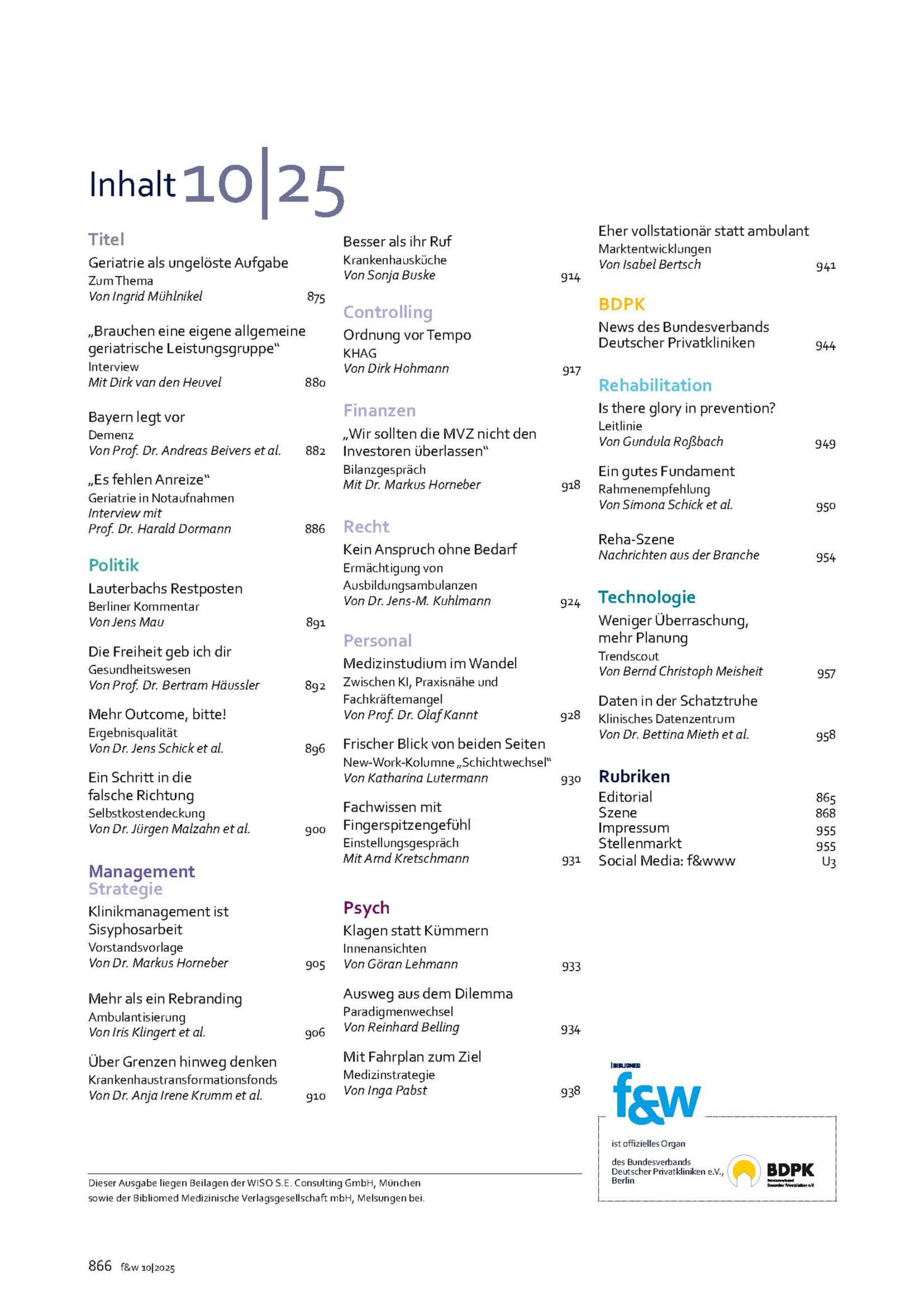f&w führen und wirtschaften im Krankenhaus 10|25 | Einzelheft
