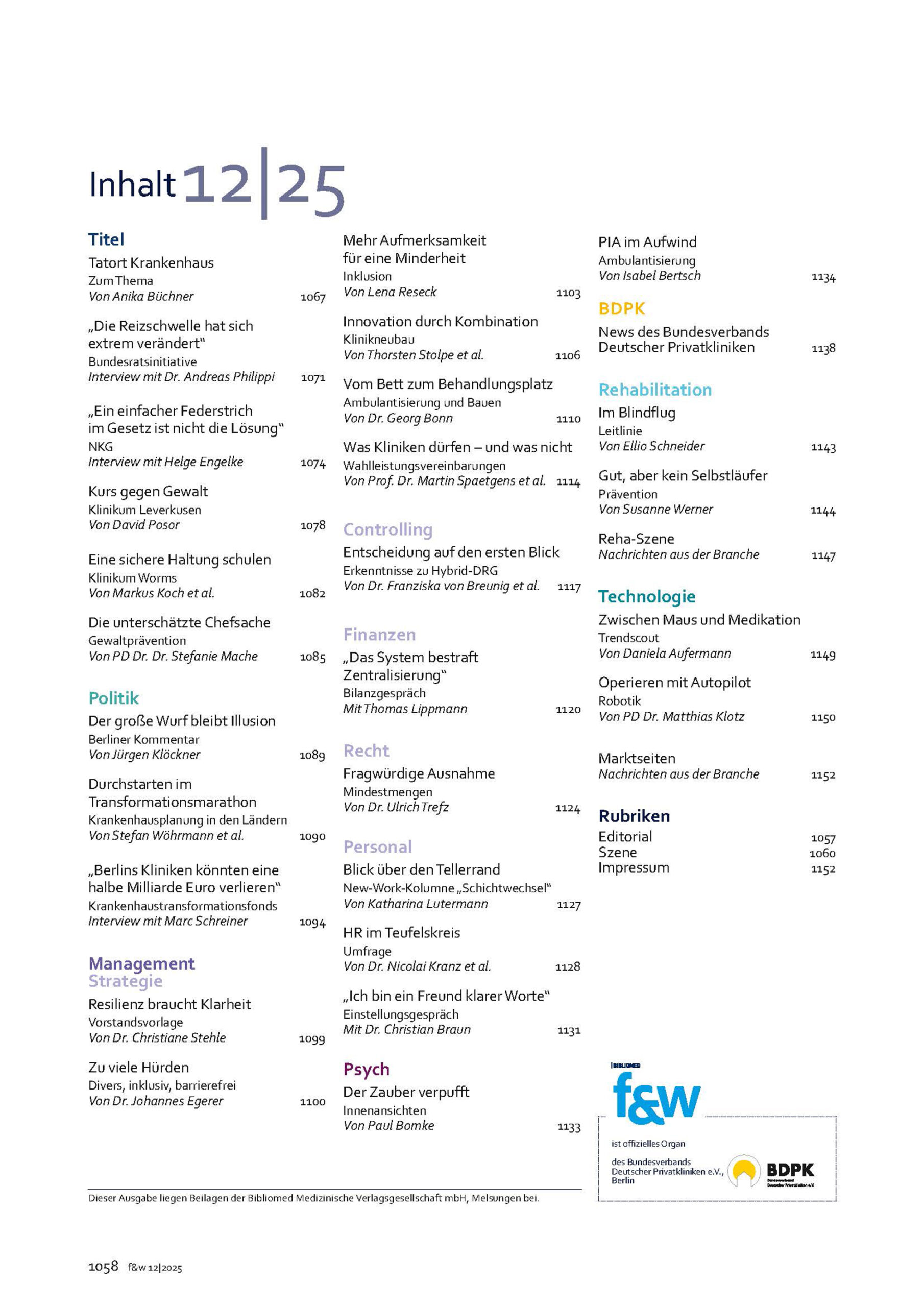 f&w führen und wirtschaften im Krankenhaus 12|25 | Einzelheft