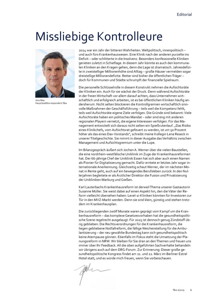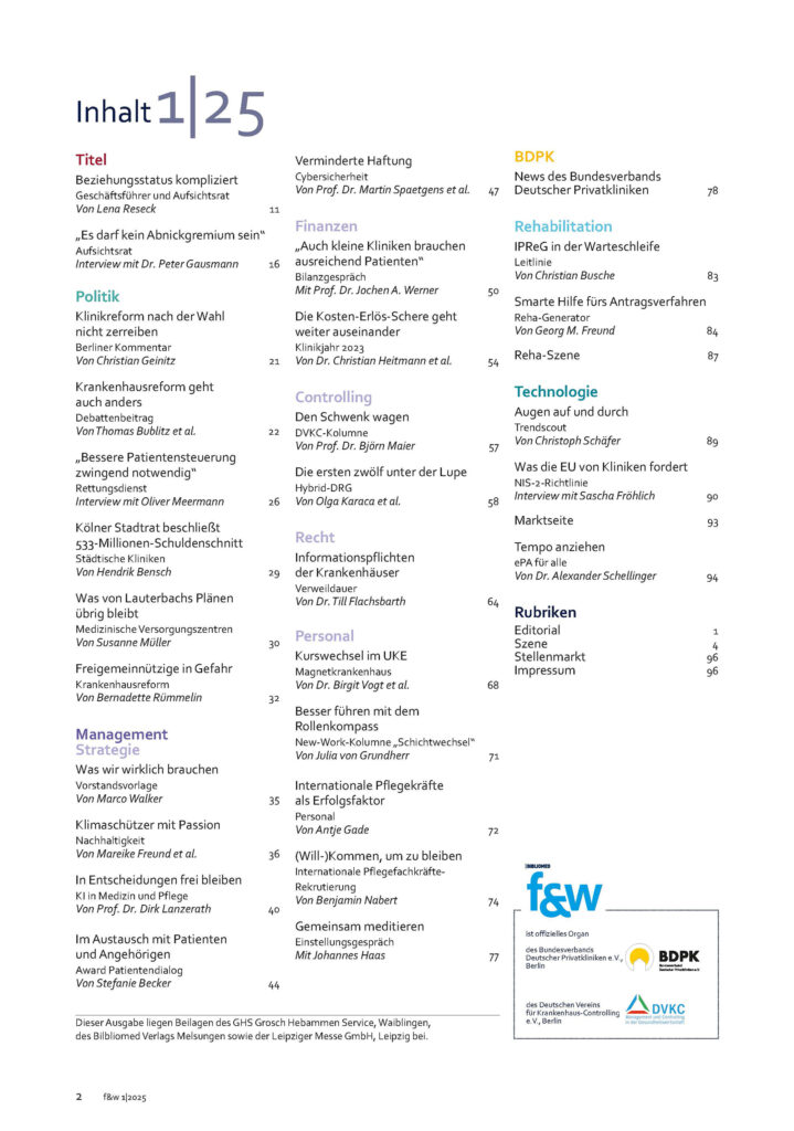 f&w führen und wirtschaften im Krankenhaus 1|25 | Einzelheft