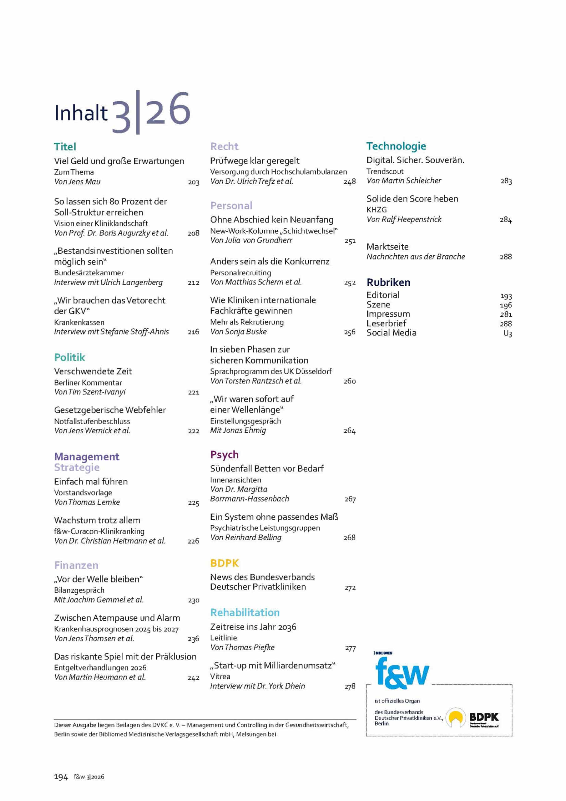 f&w führen und wirtschaften im Krankenhaus 3|26 | Einzelheft